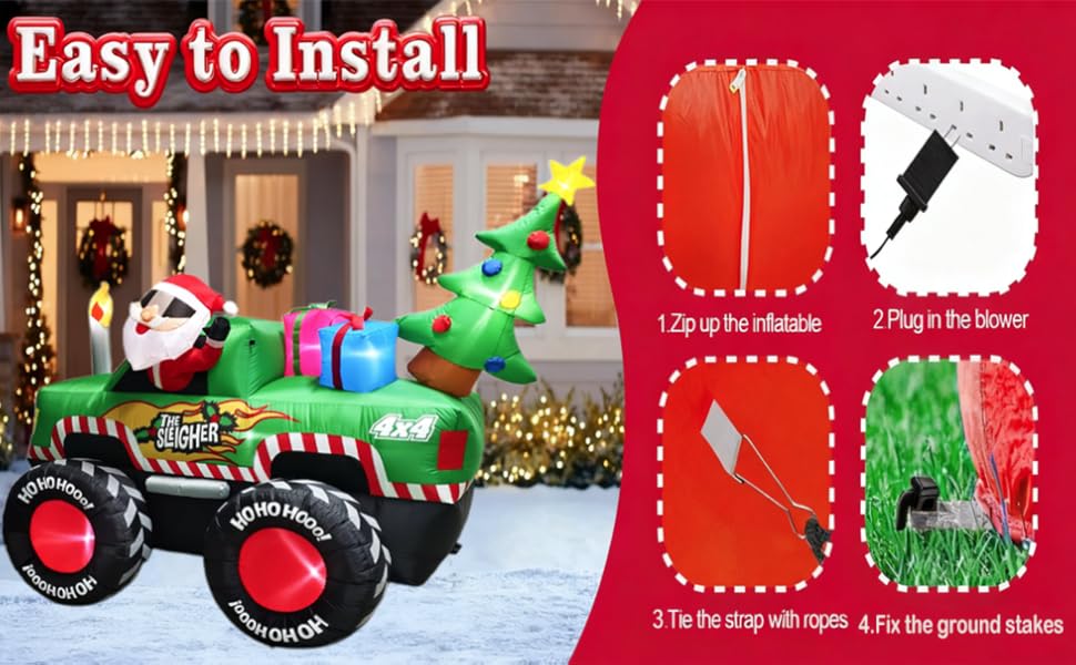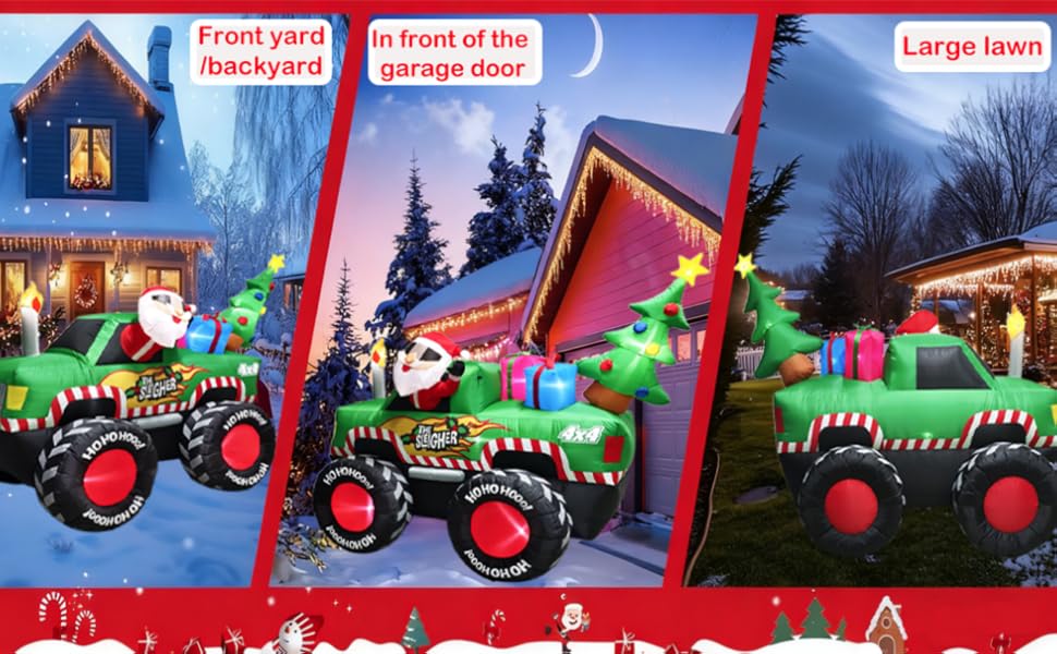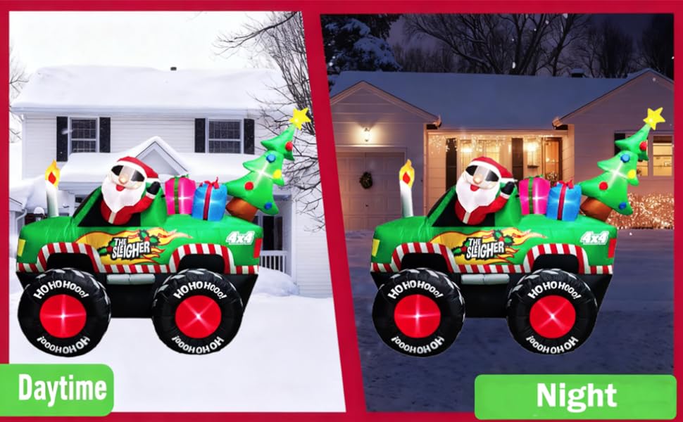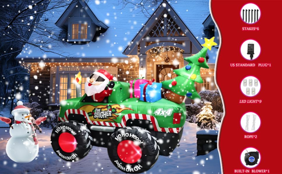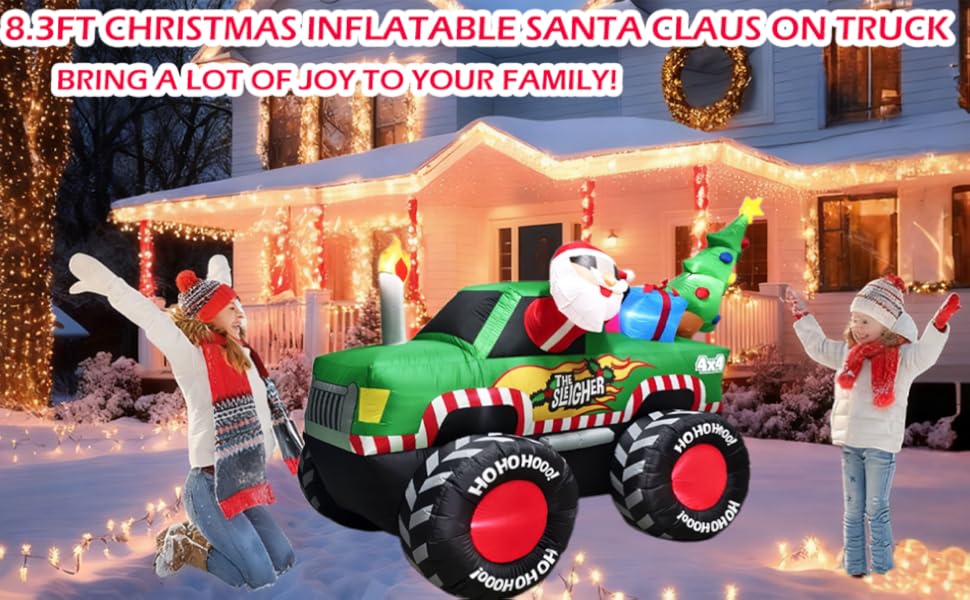 8.3FT Christmas Inflatables Monster Truck,Outdoor Inflatable Santa Claus Driving Truck with Christmas Tree Gift Boxes Xmas Blow Up Car Yard Decoration, Built-in LEDs for Garden Lawn Decor