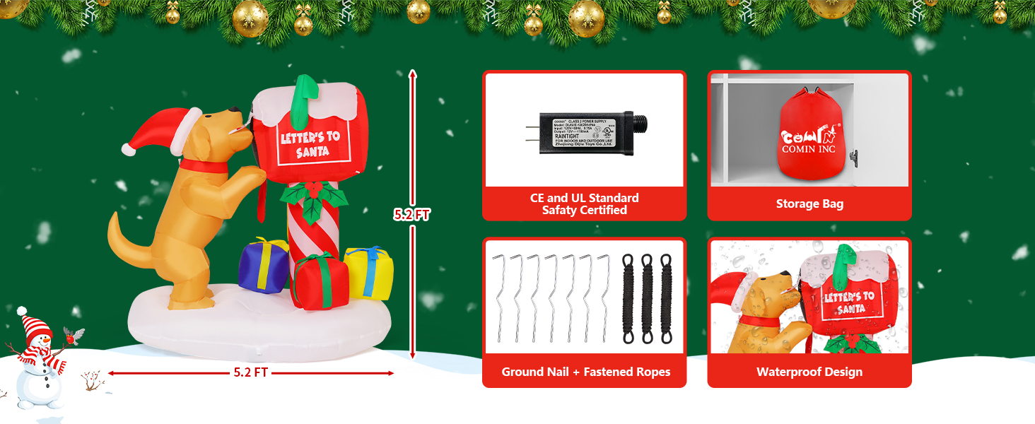 COMIN 5FT Christmas Inflatables Outdoor Decorations, Blow Up Dog and Newspaper Box Inflatable with Built-in LEDs for Christmas Indoor Outdoor Yard Lawn Garden Decorations