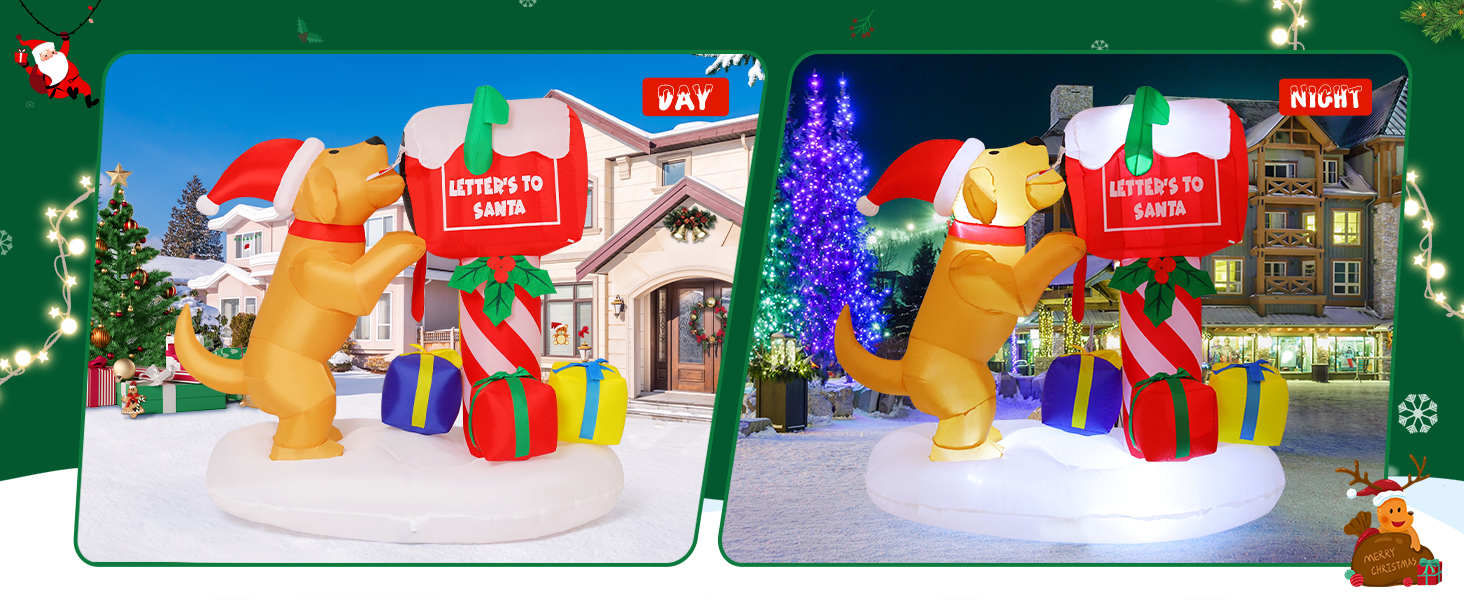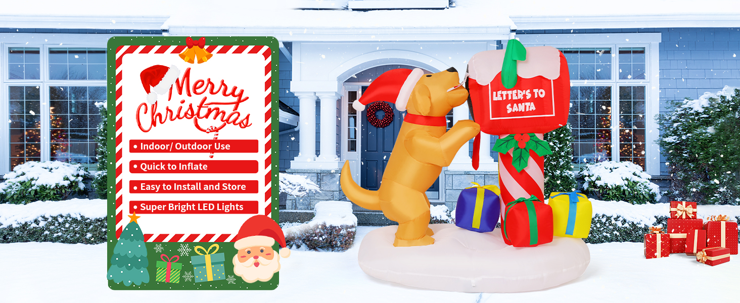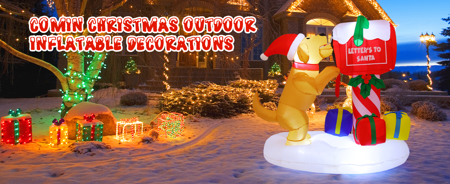 COMIN 4.8ft Christmas Inflatables Outdoor Decorations Blow Up Dog Newspaper Box