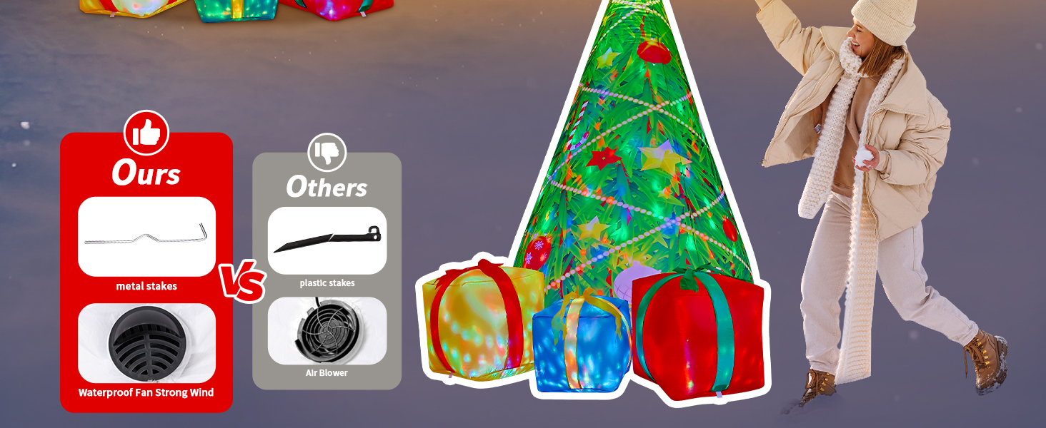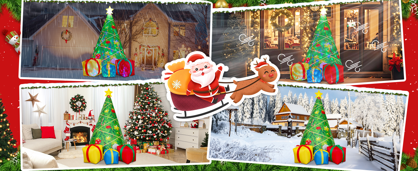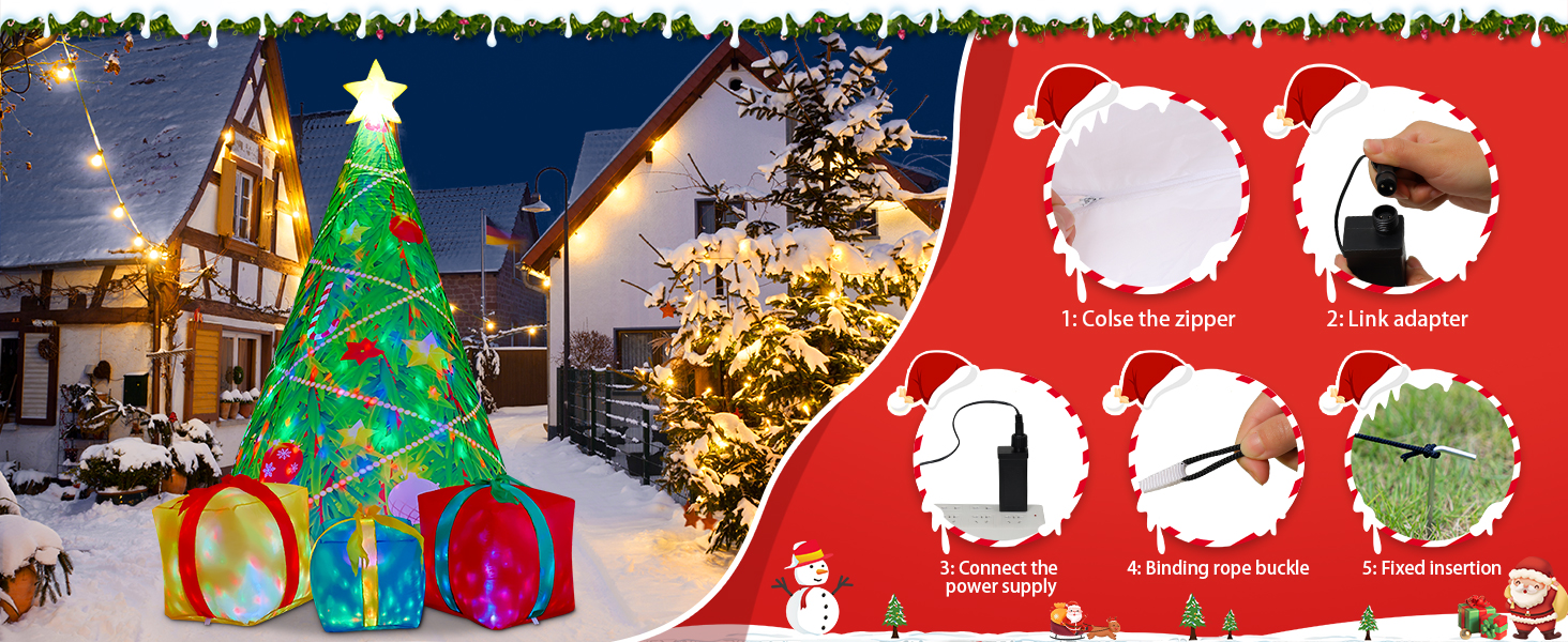 Bright lights and unique shape, which is a perfect inflatable Christmas decoration. Have a wonderful Christmas with your family and friends!
