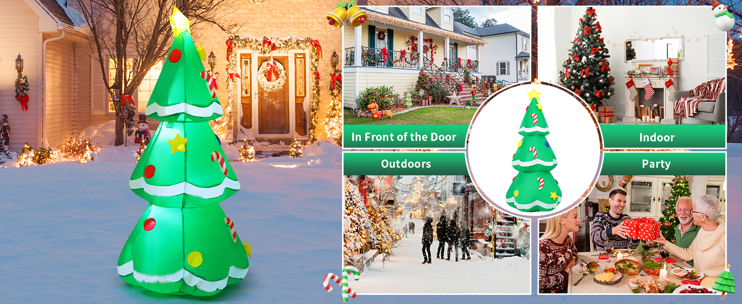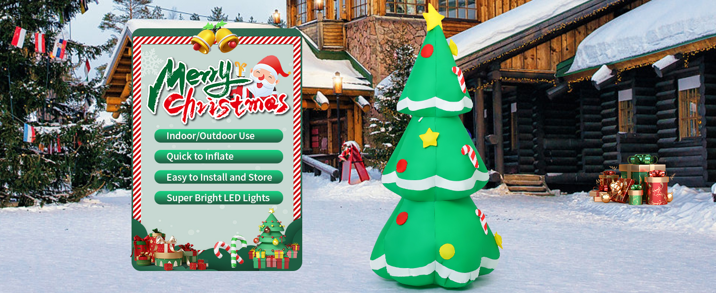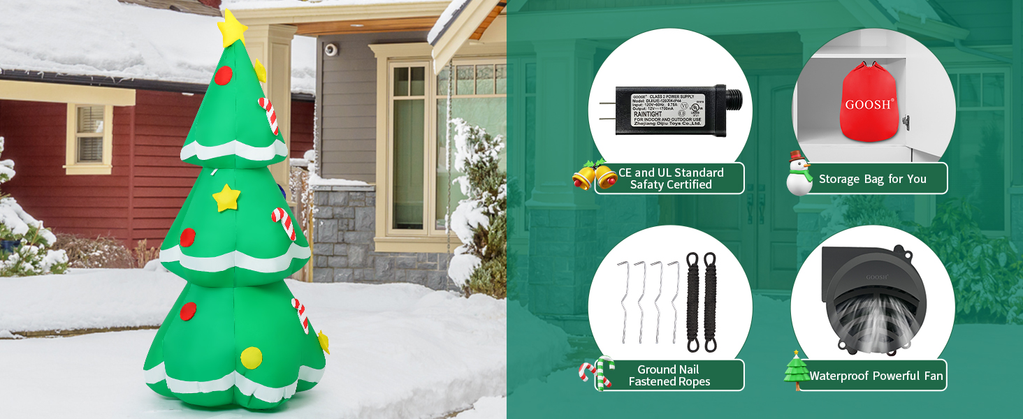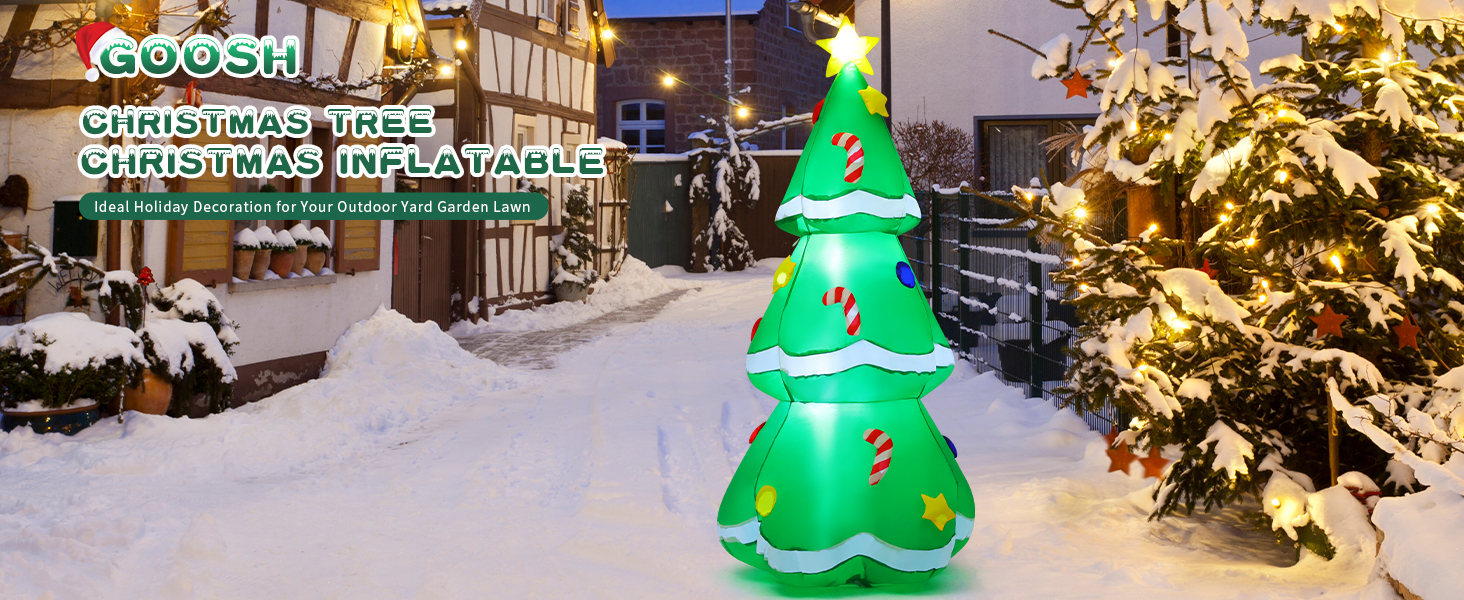 GOOSH inflatable christmas tree with LED Light can glow bright beautiful at night in your yard, bringing your christmas families party endless surprises and joy, creating a warm Christmas atmosphere!