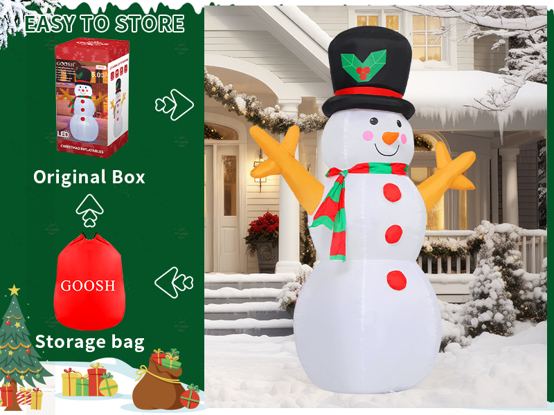 GOOSH 5 FT Christmas Snowman Inflatable Decoration Blow Up Snowman Outdoor Christmas Yard Decoration with Branch Hand Blow Up Holiday Indoor Outdoor Party Garden Yard Decoration