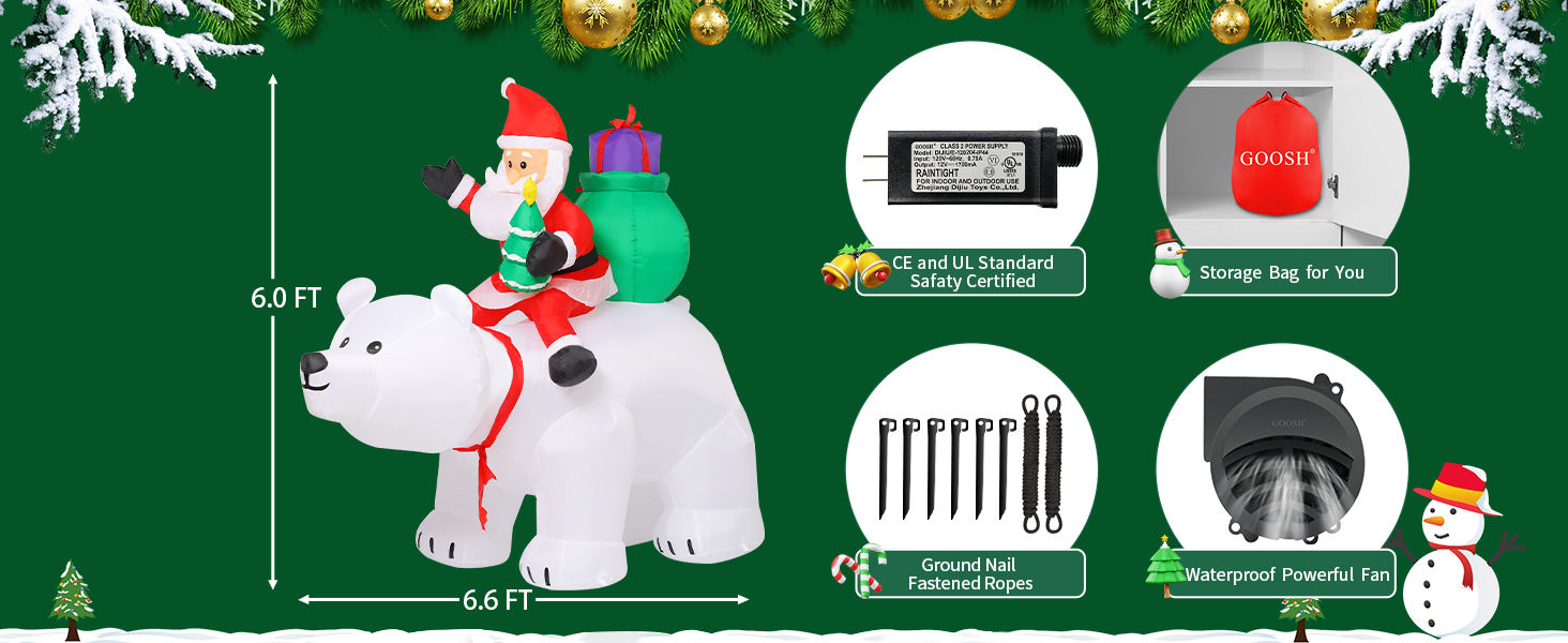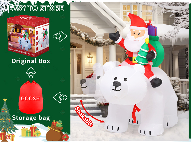 GOOSH 6 FT Christmas Inflatables Santa Clause Riding Bear with Shaking Head Outdoor Decorations Blow Up Yard Decor with LED Lights for Xmas Holiday Party Indoor Garden Lawn Décor